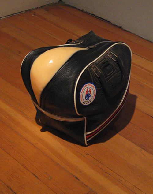 Young American Bowling Alliance Bowling bag filled with bowling ball, stained tee-shirts, silly putty, sealed with morticians wax. 2002-2003