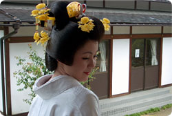 the proper fashion that suits a wedding kimono. Rie's kimono shop