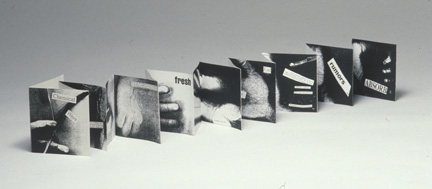 The series of smaller books Chemical Ways (1997,) Green the Fragile (1989,) and Poison America (1998,) look at environmental issues such as reforestation, air and water quality, and food contaminants. Again the hand resurfaces, pressing up against the picture plane - denying the depth of the space and adding urgency to the message.